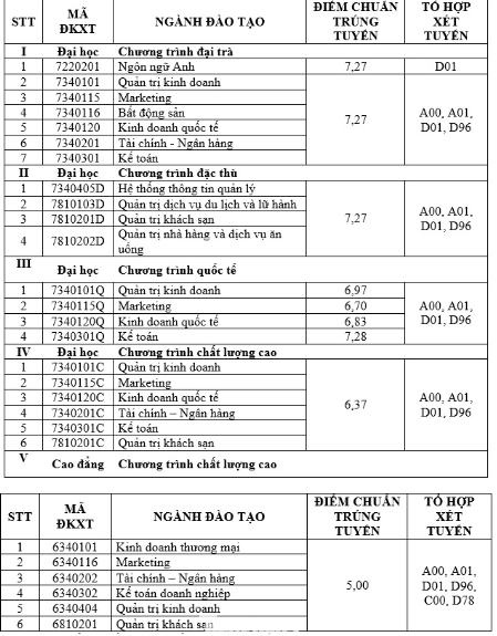 Theo đó, điểm trúng tuyển ĐH hệ đại trà và chương trình đặc thù của trường là 7,27 điểm. Chương trình quốc tế thấp nhất là 6,70 điểm, cao nhất là 7,28 điểm. Riêng chương trình chất lượng cao điểm chuẩn trúng tuyển là 6,37 điểm.