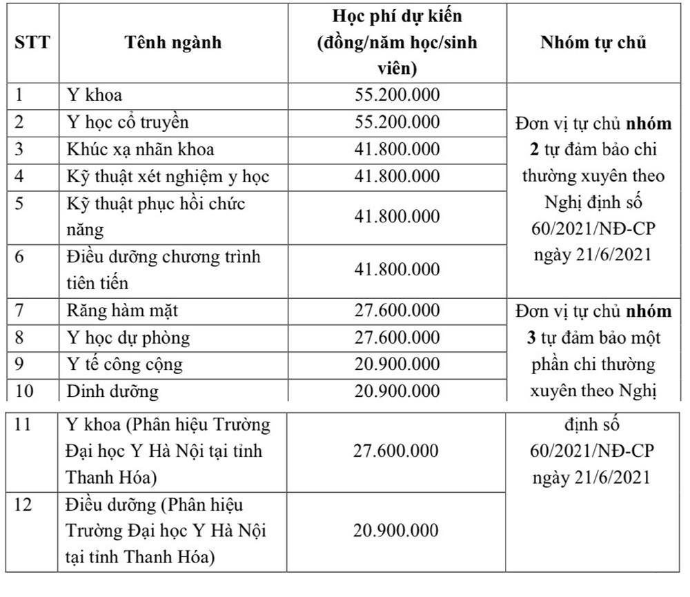 Như vậy, ngành Y khoa và ngành Y học cổ truyền tại Trường ĐH Y Hà Nội có học phí cao nhất 55,2 triệu đồng/năm/sinh viên.