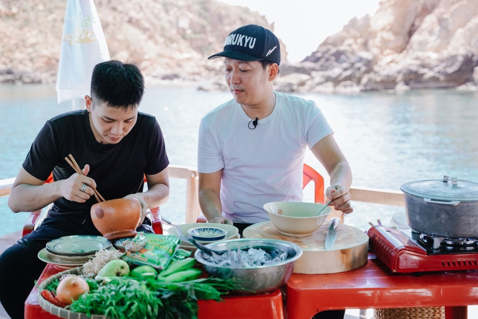 Đến eo biển Kỳ Co, Quy Nhơn cùng Trường Giang, lần đầu tiên giọng ca Bông hoa đẹp nhất đã được trải nghiệm thế nào là lao đao giữa biển khơi. Với chiến lợi phẩm đáng khích lệ, anh chàng đã được "Mười khó" chiêu đãi món cá “ngâm bồn tắm” độc đáo đậm vị miền Trung.