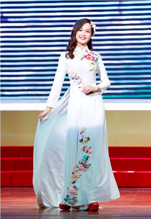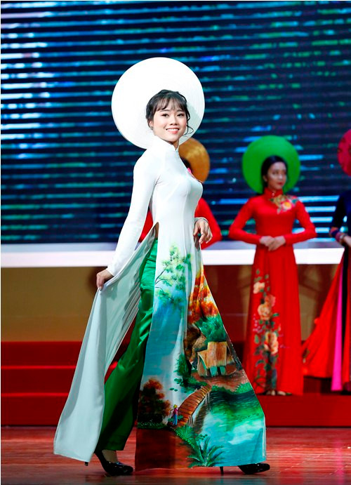 Cùng xem lại một số hình ảnh trong phần thi Trang phục áo dài của 10 thí sinh.