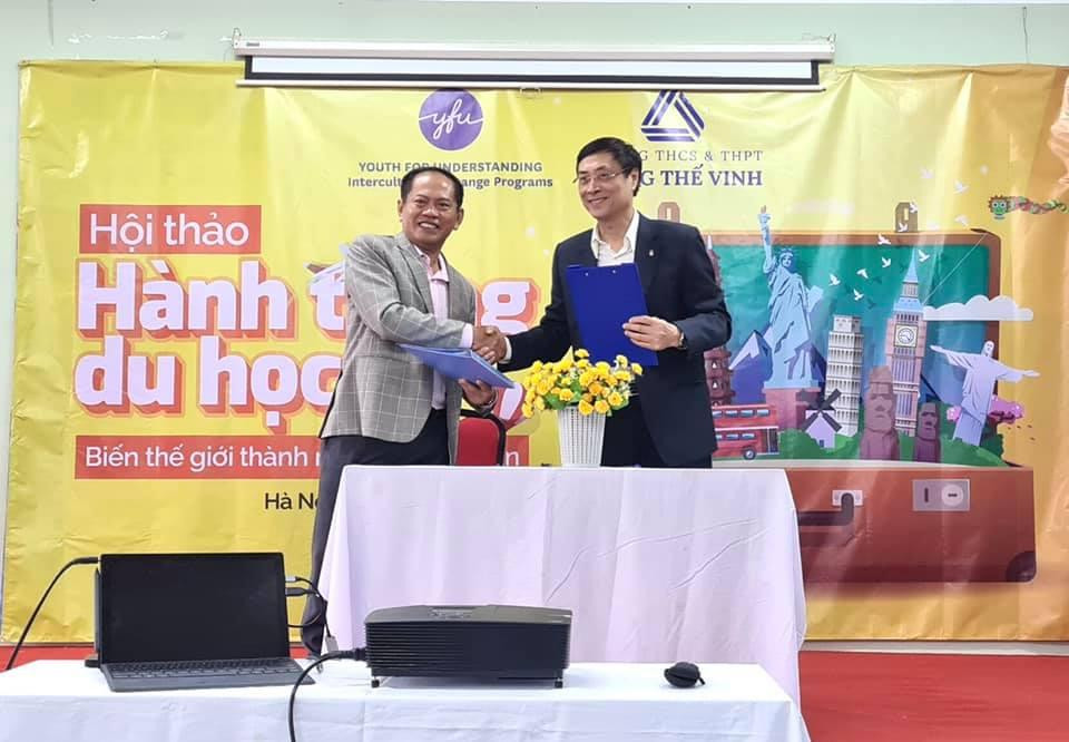 Hôm qua, tại Trường Lương Thế Vinh (Q. Cầu Giấy, Hà Nội), Giám đốc Quốc gia YFU Vietnam và Hiệu trưởng Trường Lương Thế Vinh đã ký kết Biên bản Thoả thuận Hợp tác giữa đôi bên. Đây là thoả thuận hợp tác đầu tiên giữa tổ chức giáo dục phi lợi nhuận toàn cầu YFU với một trường phổ thông tại Việt Nam.