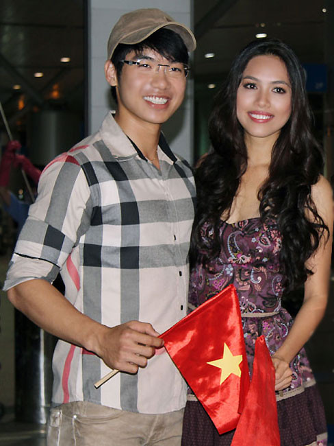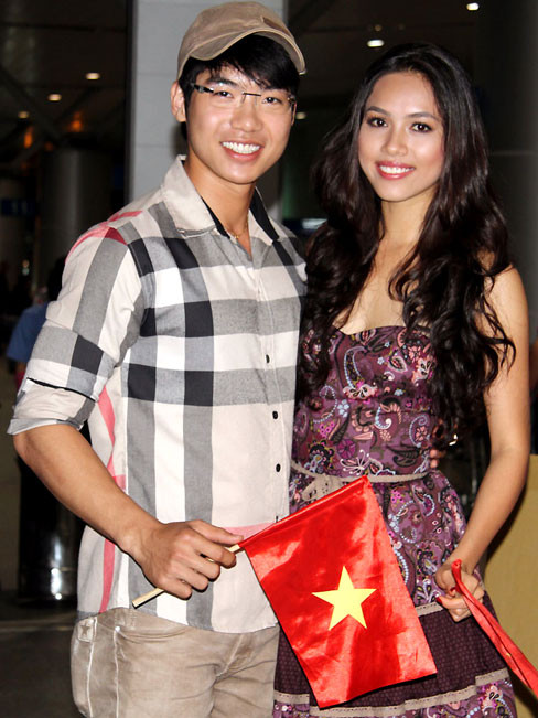 Không chỉ có mẹ và chị gái tiễn Hoàng My ra sân bay, mà trong số rất nhiều bạn bè, có mặt của Á quân Bước Nhảy Hoàn Vũ Trương Nam Thành cũng đã có mặt để kịp tặng cho Hoàng My lá cờ tổ quốc cùng với lời chúc "Chúng ta luôn tự hào là người Việt Nam, My cố gắng lên nhé!".