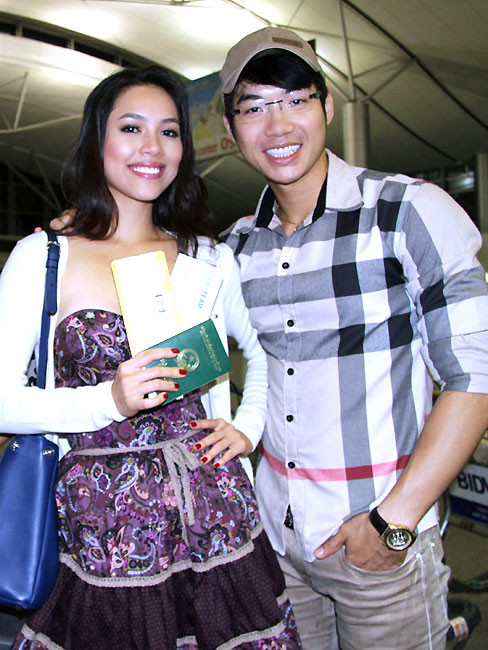 Rất nhiều người, trong đó có người mẫu Trương Nam Thành cũng đã có mặt tại sân bay Quốc Tế Tân Sơn Nhất để tiễn người đẹp lên đường.