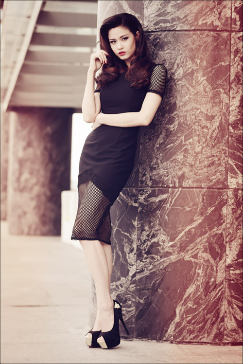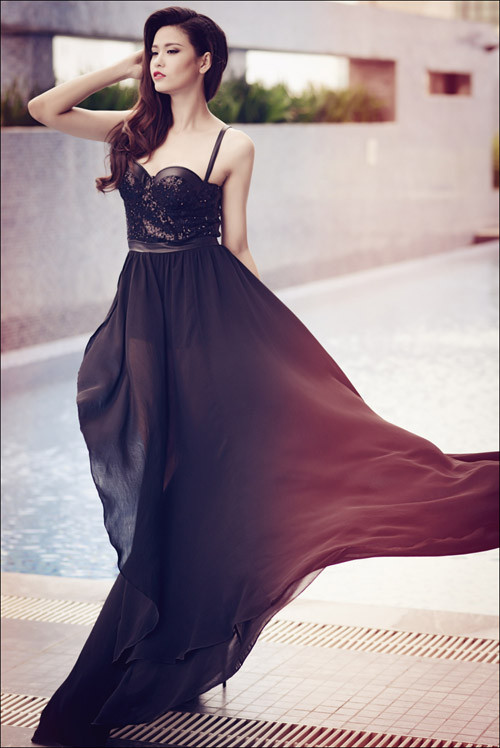 Nữ ca sĩ - diễn viên kiêu sa, quyến rũ trong những bộ váy áo lộng lẫy. Bộ ảnh do stylist Thiên Thanh thực hiện, với sự hỗ trợ của chuyên gia trang điểm Kuny Lee.