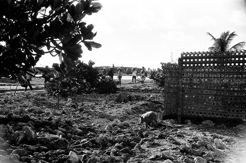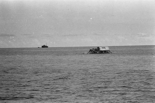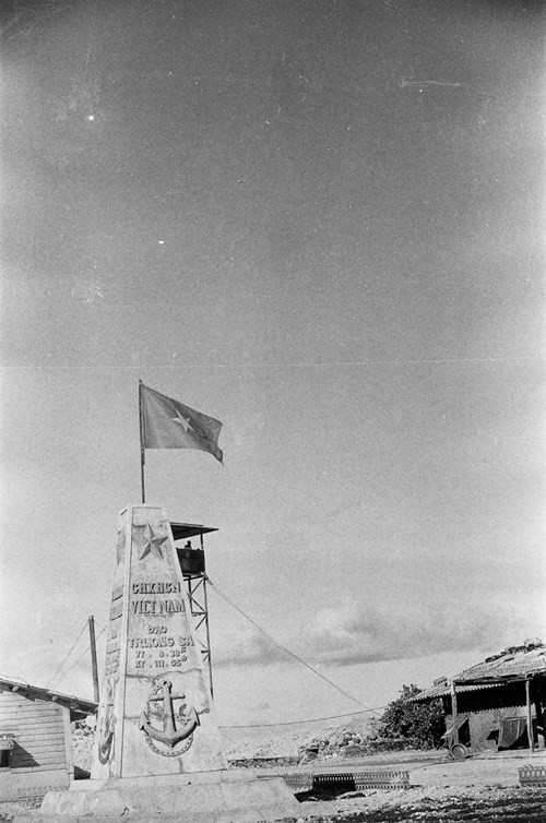 Nhà cao cẳng trên đảo Đá Lát năm 1988. Cờ Tổ quốc được sơn lên mái tôn như khẳng định chủ quyền của Việt Nam trên đảo này.