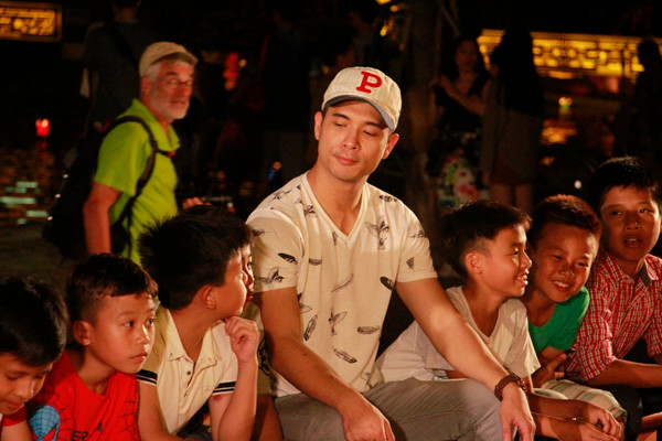 Ở lần tham gia này, anh còn tự tay dán đèn lồng để gửi tặng cho các cầu thủ nhí với nét vẽ hoa văn cực kỳ khéo tay. Đặc biệt, lần đầu tiên anh cũng bật mí mình rất có khiếu kể chuyện vui. Như trong lúc xích lô đang thong thả len giữa dòng du khách tại Hội An, anh đã bật mí một kỷ niệm tuổi thơ cho các cầu thủ nhí cùng nghe: “Hồi nhỏ chú mập lắm, có lần hai chị em chú cùng phóng lên xích lô thì bị bể bánh. Chú phải dẫn bộ cả chục cây số để tìm chỗ vá xe. Từ đó chú sợ mập lắm, cố nhịn ăn để đẹp trai sáu múi như hôm nay nè”. Thỉnh thoảng trong hành trình đến với Cầu thủ nhí 2017, Trương Thế Vinh lại mang những câu chuyện vui nhẹ nhàng như thế để giúp các bé có thêm năng lượng.