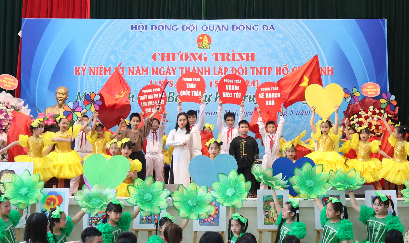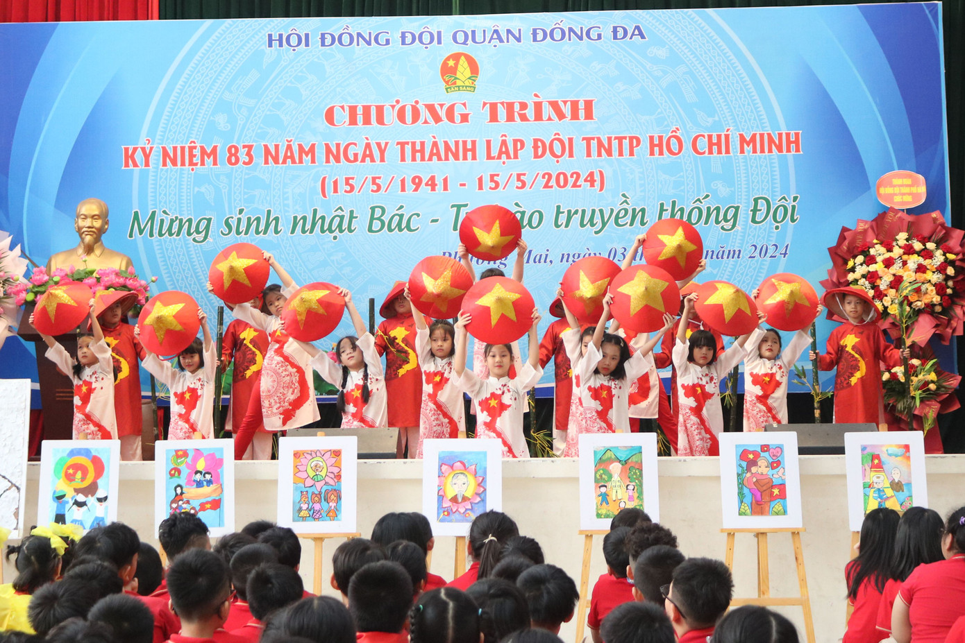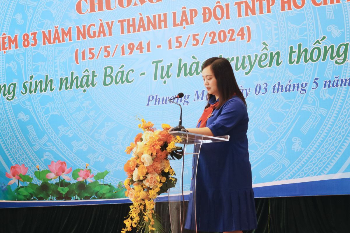 Chị Nguyễn Thị Thanh Tâm - Bí thư Quận đoàn, Chủ tịch Hội đồng Đội Quận đại diện cho hội đồng Đội quận Đống Đa đọc diễn văn kỷ niệm 83 năm Ngày thành lập Đội TNTP Hồ Chí Minh. Chị nhắc lại, tuyên dương nhiều thành tích xuất sắc mà thiếu nhi quận Đống Đa đã đạt được trong 1 năm qua, từ kết quả học tập tốt giành được nhiều giải cao tại các cuộc thi lớn tới các hoạt động Đội sôi nổi.