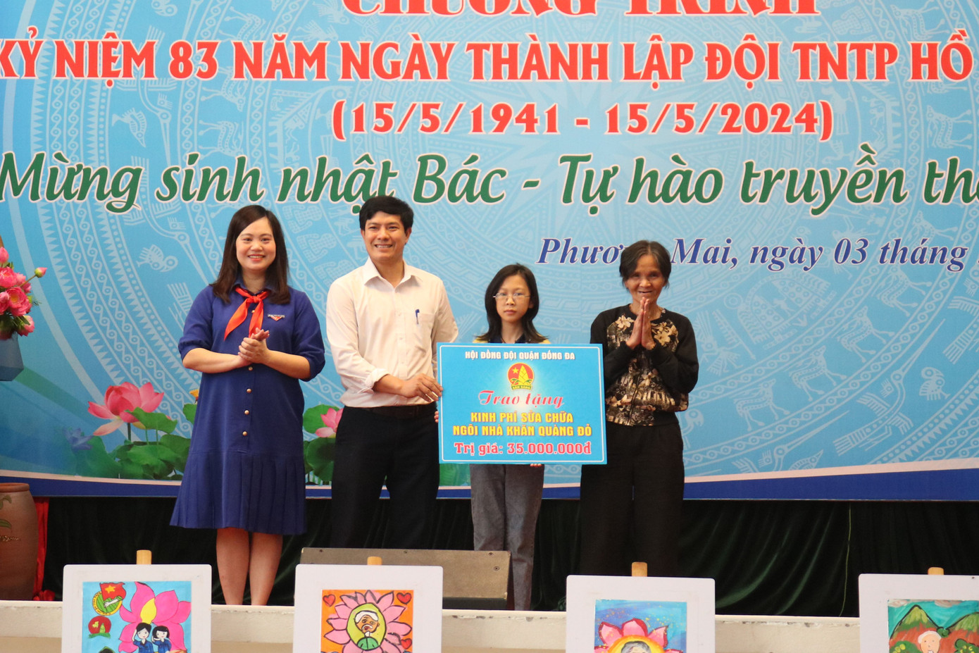 Trước đó, Ban thường vụ Quận đoàn Đống Đa - Hội đồng Đội quận Đống Đa đã kêu gọi các nhà hảo tâm, các Liên đội trực thuộc cùng chung tay xây dựng, sửa chữa "Ngôi nhà khăn quàng đỏ" cho gia đình bạn Ngô Châm Anh - học sinh lớp 5B, trường Tiểu học Trung Phụng. Số tiền ủng hộ là 35 triệu đồng.
