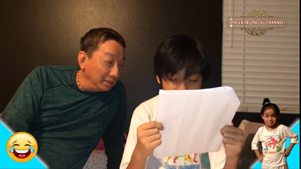Một video khác cũng rất hút khách trên kênh của chàng khờ chính là video Trường Vũ dạy con học tiếng Việt. “So cute”- quá dễ thương là cảm nhận của nhiều “thượng đế” khi xem video này. Góp sức cho sự thành công của video, phải kể đến công của cậu con trai không rành tiếng Việt của Trường Vũ: “Ai mà bị thất tình hay buồn vào xem bảo đảm tối ngủ nằm mơ giật mình vẫn còn cười”, một khán giả viết.