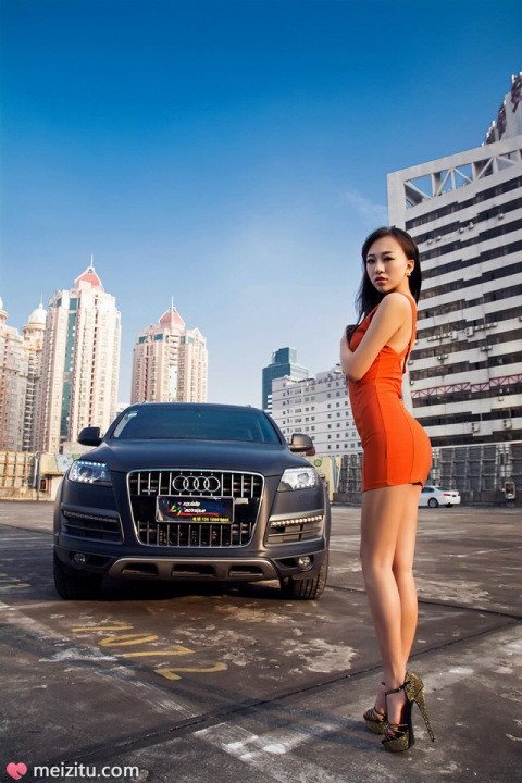 TPO - Cô người mẫu xinh đẹp với thân hình gợi cảm khoe dáng nuột nà bên cạnh chiếc xế hộp sang trọng Audi Q7.