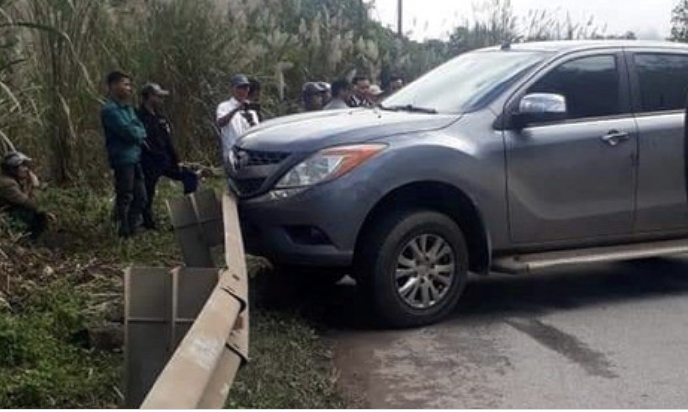 Ngay lập tức, tài xế lái chiếc xe trên đã nhấn ga bỏ chạy và đâm vào lan can đường. Khi lực lượng công an ập tới thì hai người trên xe đã nhanh chóng đạp cửa chạy vào khu vực rừng gần đó.