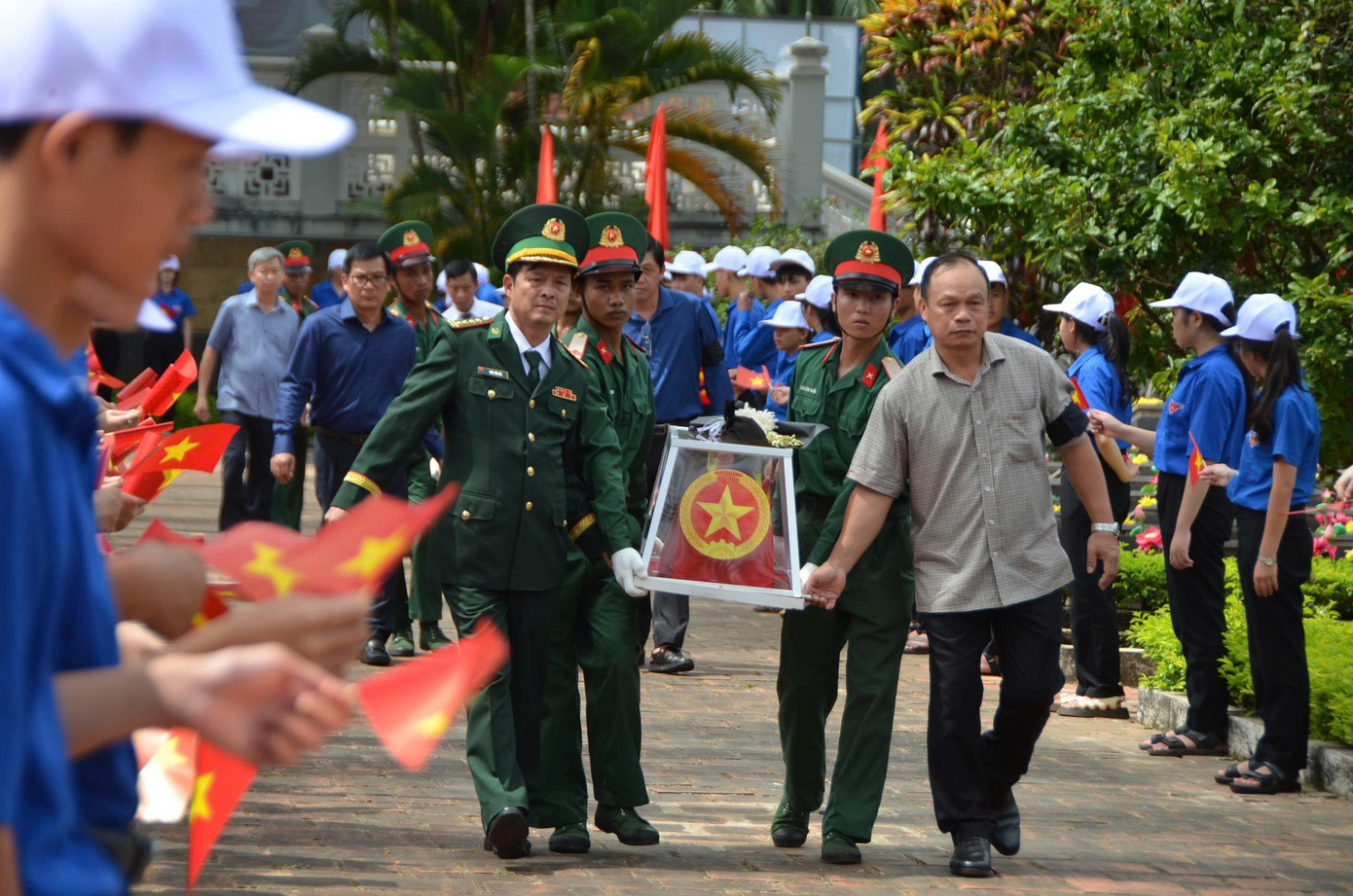 | Ngay sau lễ truy điệu, hài cốt liệt sĩ được đưa về nơi an táng bên đồng đội. |