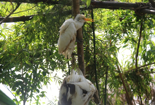 Để đánh được cò, vạc… các thợ đánh chim đã làm những con cò giả đặt giữa các đầm nước, trên các ruộng lúa; thậm chí dùng chim còn sống cho đứng trên những thanh gỗ được đóng kiểu chữ T buộc chân vào dây cước cắm ở các cánh đồng.