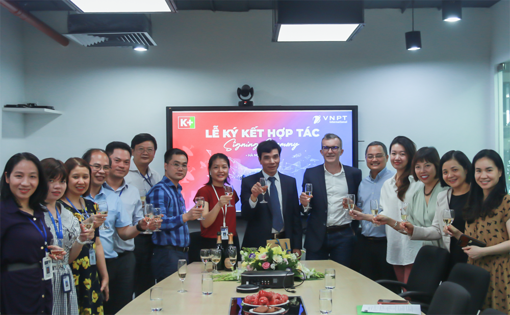 | Đại diện Công ty Viễn thông Quốc tế (trái) và Truyền hình K+ (phải) tại buổi ký kết |