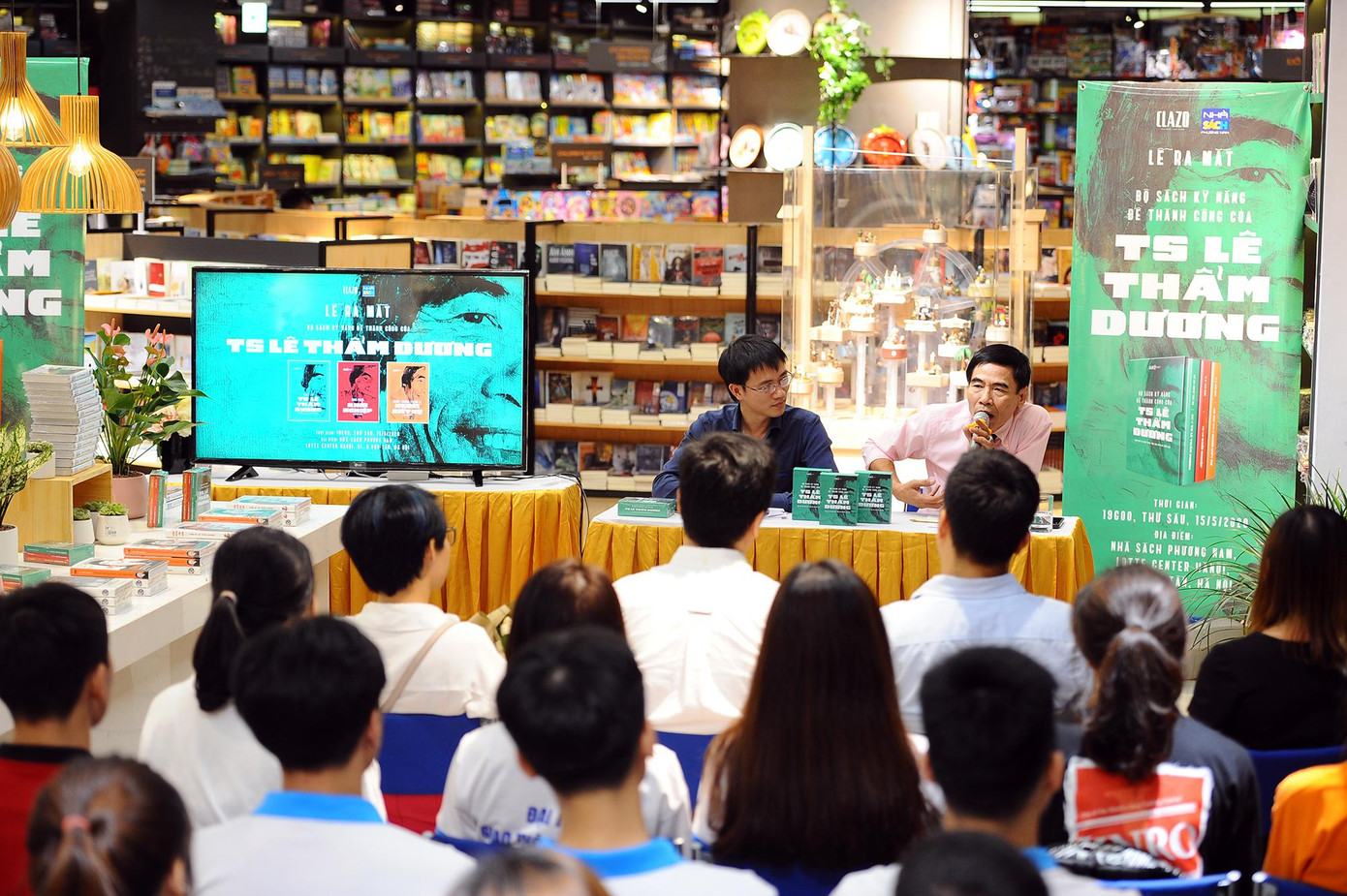 Bà Nguyễn Thị Nguyệt – Giám đốc Nhà sách Phương Nam Hà Nội - tặng hoa cảm ơn sự có mặt của TS Lê Thẩm Dương.Một trong những câu hỏi được quan tâm nhất là tại sao lần này TS Lê Thẩm Dương lại xuất bản cùng lúc 3 cuốn sách theo khổ bỏ túi (điều ông chưa từng làm), TS Lê Thẩm Dương lý giải đầu tiên là vì ông thích làm những điều khác biệt (có thể sắp tới ông sẽ xuất bản cuốn sách có khổ to bằng nửa chiếc bàn), nhưng quan trọng hơn đây là yêu cầu của đông đảo người hâm mộ tương tác với ông qua rất nhiều kênh, trong đó có mạng xã hội. TS Lê Thẩm Dương cũng khẳng định lại rằng xuất bản sách không phải là kênh để ông làm thương hiệu bản thân hay kiếm tiền vì nếu vì những mục đích đó ông có nhiều kênh khác hiệu quả hơn rất nhiều lần.