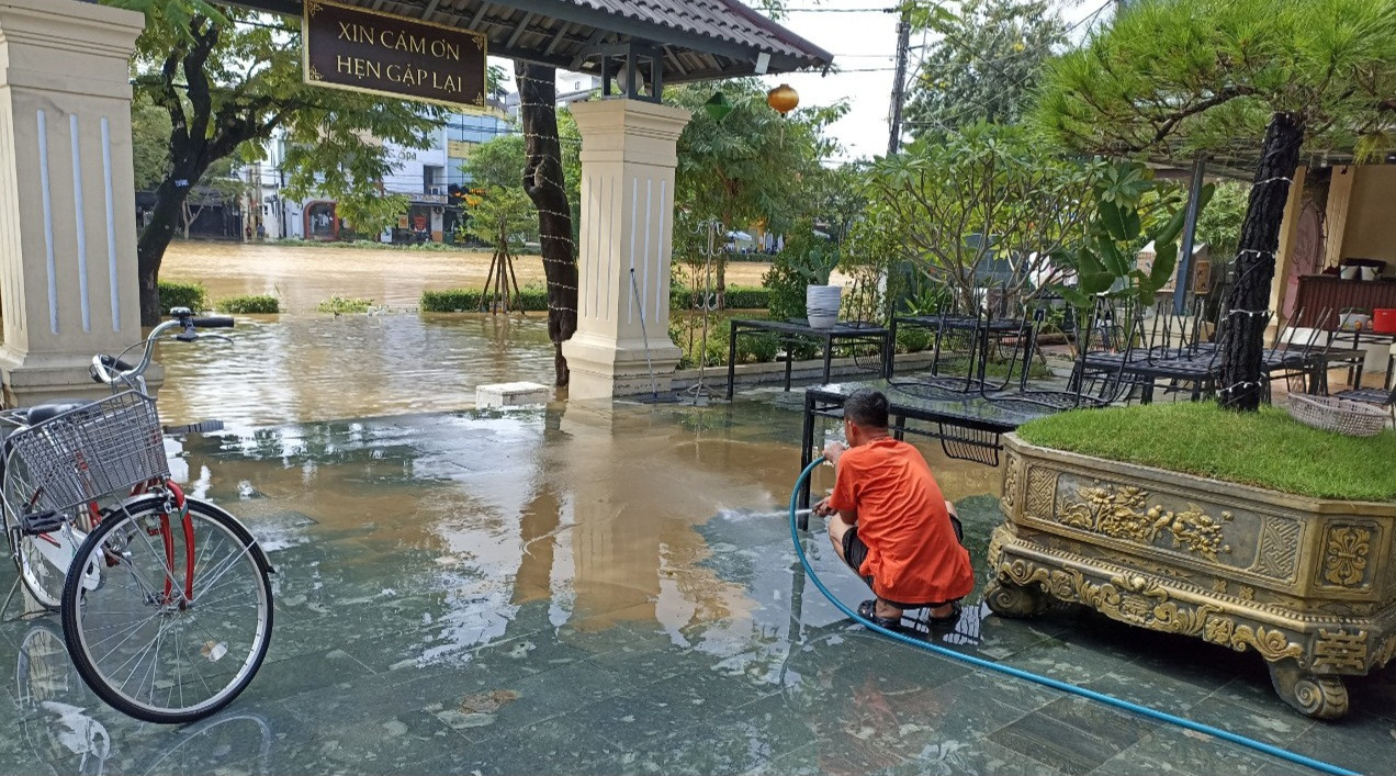 Sau khi nước rút dần, nhiều gia đình, chủ hàng quán vùng hạ du sông Hương, sông Bồ bắt đầu tổ chức dọn dẹp, vệ sinh, đẩy rửa bùn đất để sớm ổn định sinh hoạt, sản xuất, kinh doanh.