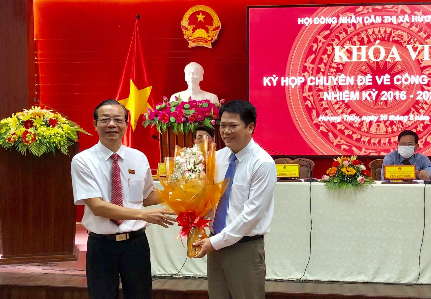 Trong sáng cùng ngày, HĐND thị xã Hương Thủy (khóa VI) tổ chức kỳ họp chuyên đề về công tác cán bộ, qua đó bầu bổ sung chức danh Phó Chủ tịch UBND thị xã Hương Thủy và Ủy viên UBND thị xã, nhiệm kỳ 2016-2021. Kết quả, ông Ngô Văn Vinh, Chánh Văn phòng Thị ủy Hương Thủy trúng cử chức danh Phó Chủ tịch UBND thị xã Hương Thủy.