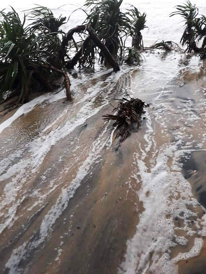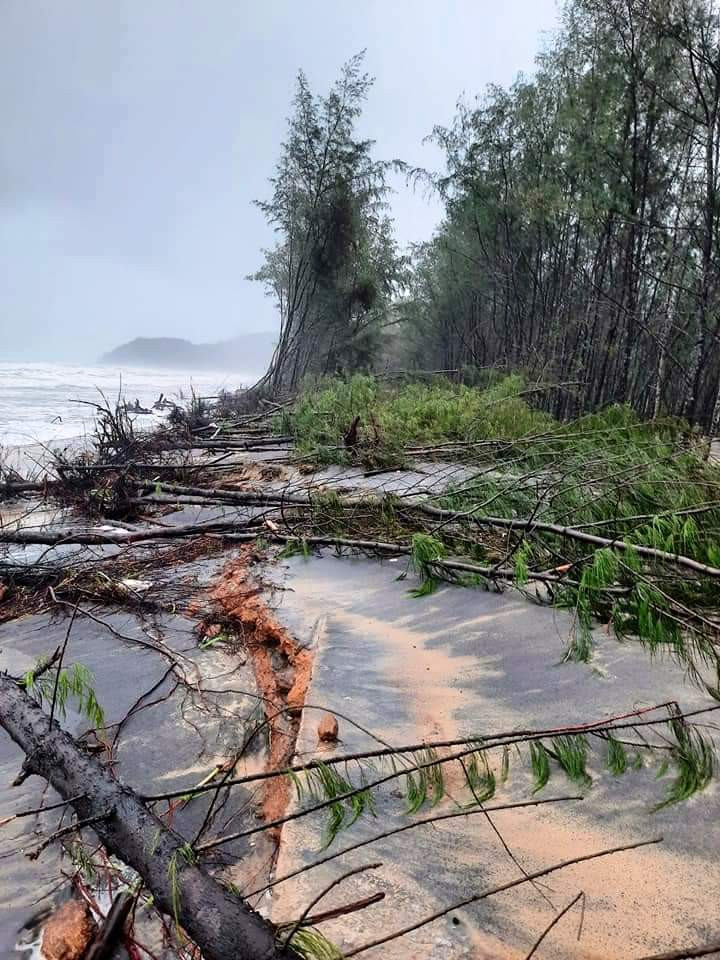 Còn theo thông tin từ UBND huyện Phú Lộc, mưa lớn kèm sóng lớn hoành hành liên tục từ chiều 7 đến sáng 8/10 đã làm khu vực bờ biển xã Giang Hải tiếp tục sạt lở nặng, biển xâm thực vào các cánh rừng dương liễu với chiều sâu hàng chục mét, nguy cơ thêm mở cửa biển mới.