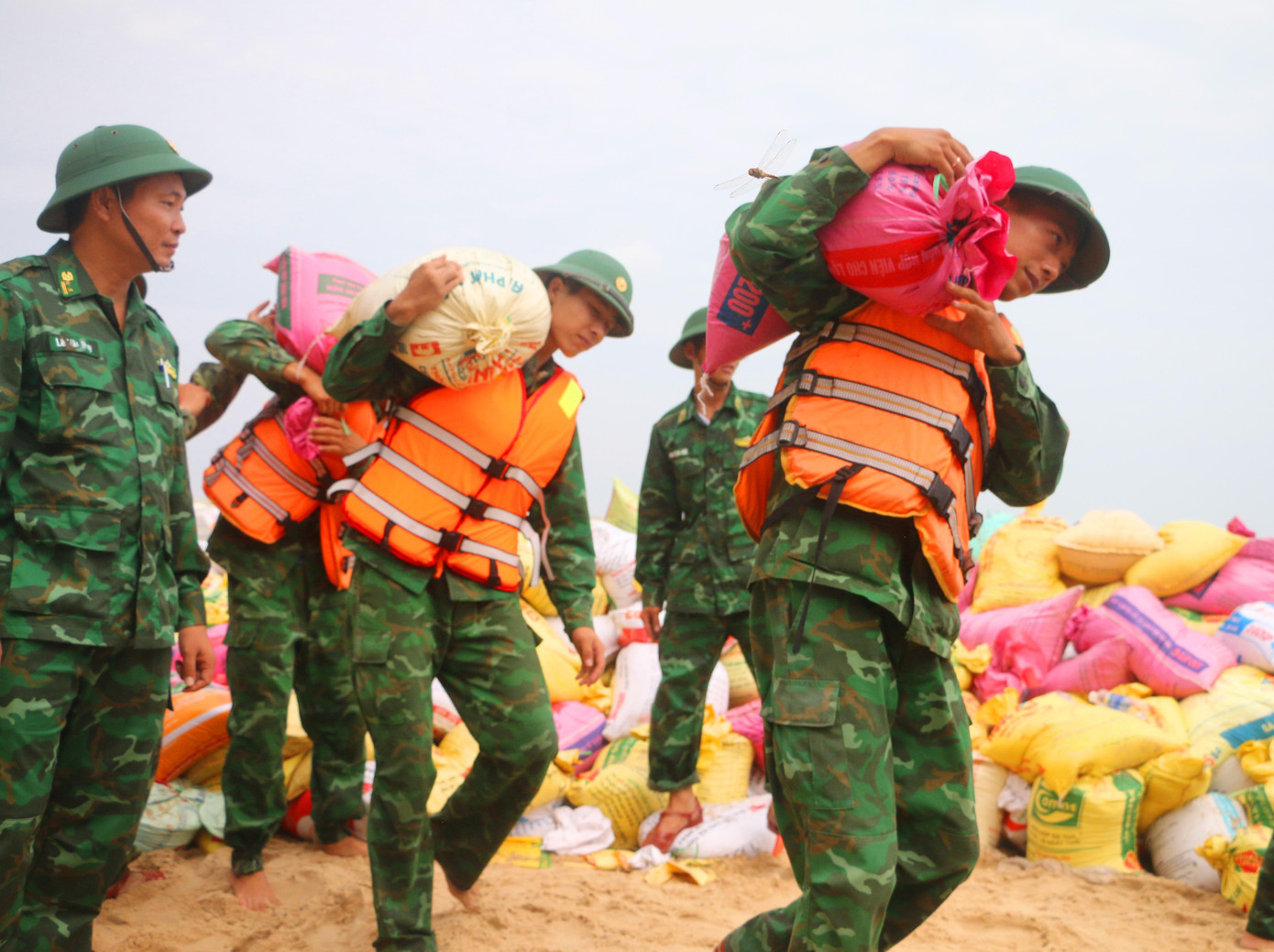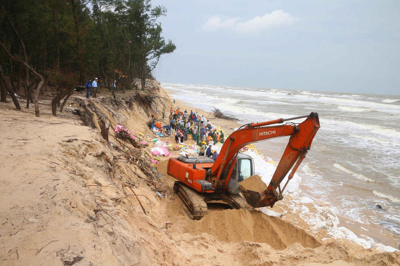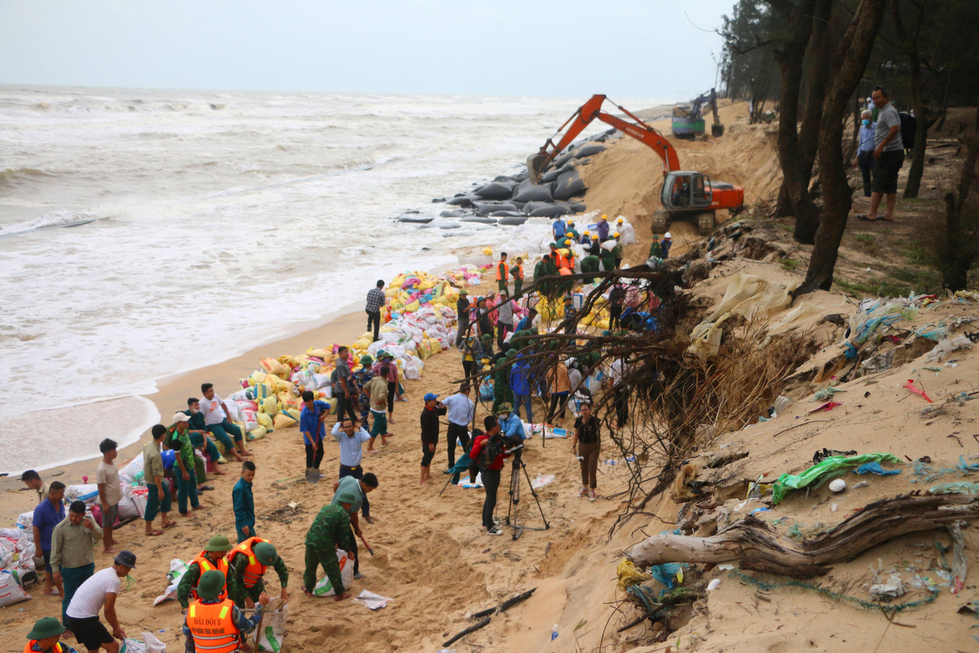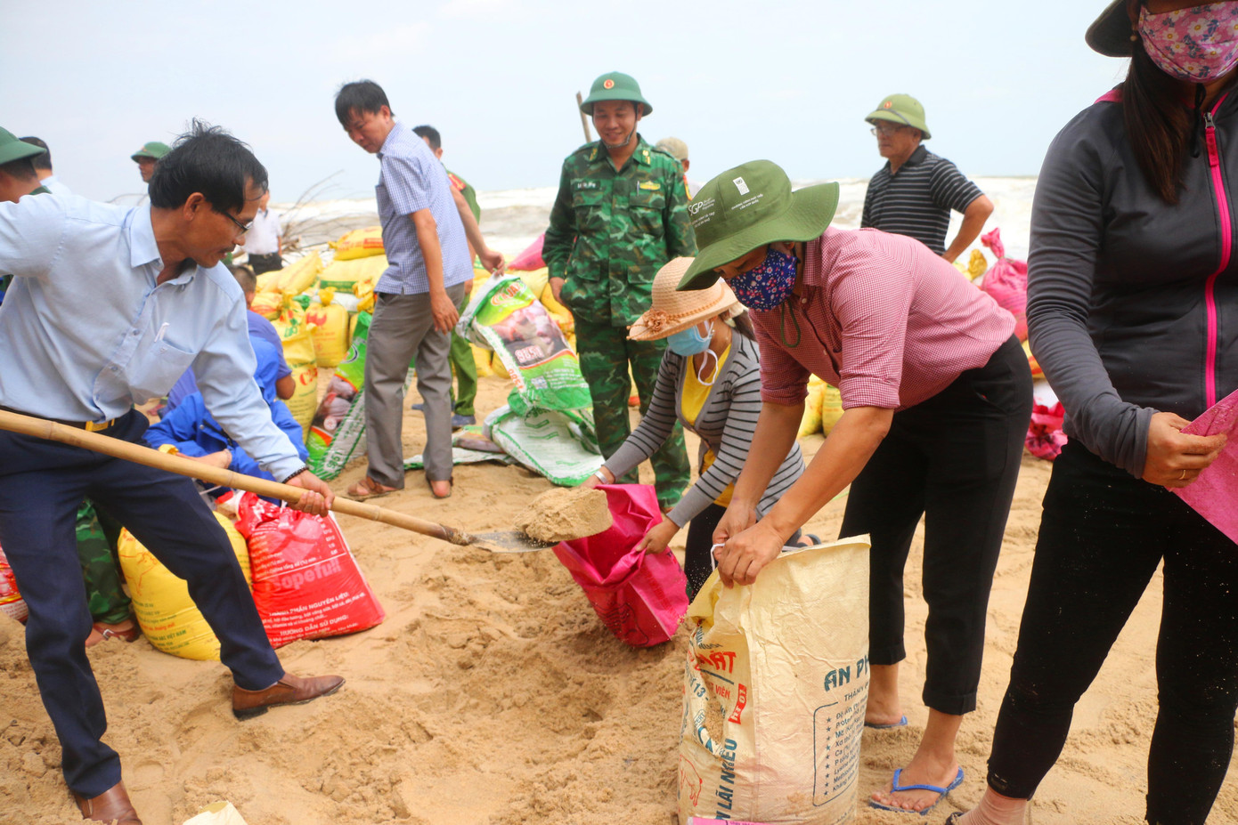 Trước tình hình này, chính quyền địa phương và lực lượng chức năng đã huy động hàng trăm cán bộ, chiến sĩ biên phòng, phối hợp cán bộ và người dân địa phương ra quân cứu bờ biển bị xâm thực.