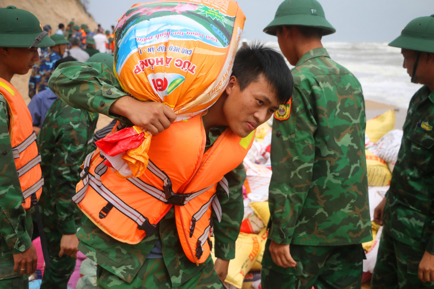 Ngày 11/10, tại vùng bờ biển xã Phú Thuận (huyện Phú Vang, tỉnh TT-Huế), hàng trăm cán bộ, chiến sĩ cùng cán bộ, lực lượng dân quân, người dân địa phương đã được huy động cùng tham gia ứng cứu, khống chế tình trạng sóng biển xâm thực vào đất liền ở mức độ nghiêm trọng tại khu vực giáp múi bờ kè An Dương 1 trong giai đoạn thi công.
