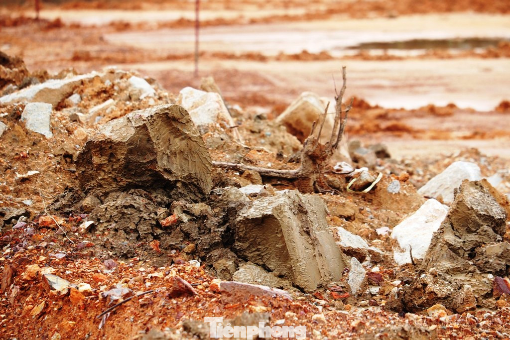 Cũng theo ông Thái, Ban quản lý dự án cũng đã yêu cầu nhà thầu phải thu nhặt và ủi dồn các gốc cây ra biên công trình để bốc đổ đi. Do tập trung phần san nền để cắm mốc phân lô giao đất cho dân, nên trên công trường vẫn còn những đá tảng lẫn trong đất nền chưa được bóc tách đổ đi nơi khác.