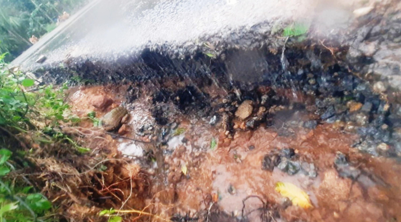 | Tuyến Quốc lộ 49B qua huyện Phú Lộc bị sạt lở, bong vỡ do mưa lớn. |