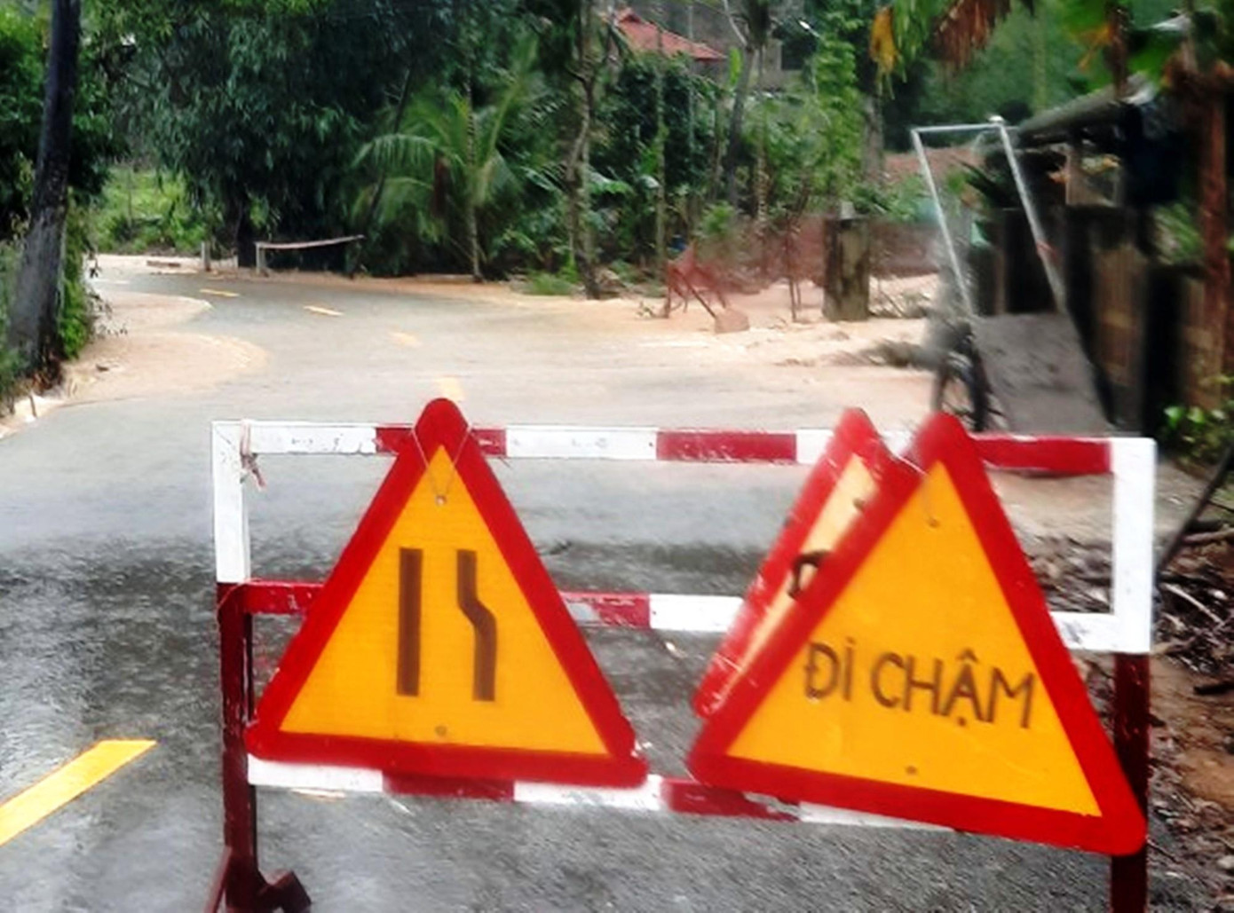 | Rào chắn cảnh báo nguy hiểm trên tuyến Quốc lộ 49B |