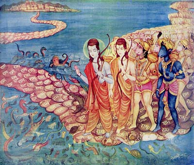 Trong sử thi “Ramayana”, người ta nói rằng cây cầu được xây dựng trên một nền gỗ (được đặt trên chỗ cao nhất của một mặt phẳng tự nhiên đã có trước đó) sau đó các tảng đá lớn nhỏ được đặt lên
