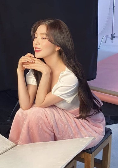 Ngay cả khi ở trong studio chụp ảnh và chỉ chụp nửa thân trên, Irene sẽ dùng chăn quấn kín đôi chân như thế này. Vừa là cách để giữ ấm trong những ngày trời lạnh, vừa không lo bị lộ hàng.