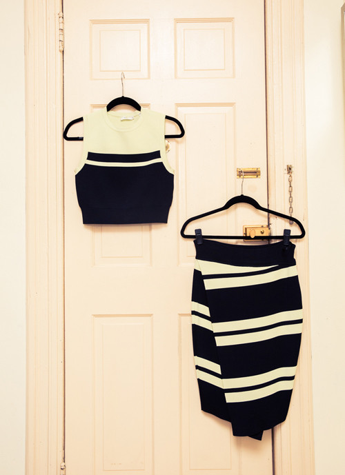 Váy Alexander McQueen cùng giày Louis Vuitton được cô treo lên tủ lạnh.