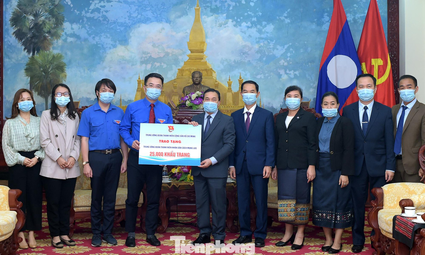 Anh Nguyễn Tường Lâm cho biết: Trước tình hình dịch COVID-19 đang diễn biến phức tạp tại Lào trong những ngày qua, T.Ư Đoàn TNCS Hồ Chí Minh mong muốn chia sẻ, sát cánh cùng thanh niên và nhân dân Lào trong cuộc chiến đẩy lùi dịch COVID-19. T.Ư Đoàn TNCS Hồ Chí Minh trân trọng gửi tặng 25.000 khẩu trang hỗ trợ T.Ư Đoàn TNNDCM Lào.