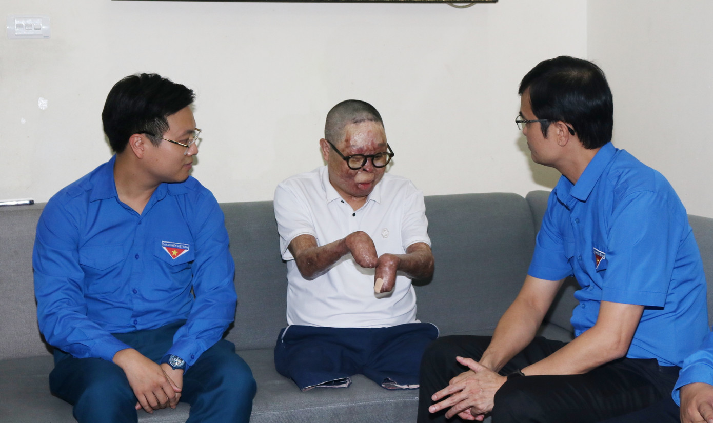 Thay mặt đoàn công tác, đồng chí Bùi Quang Huy, Bí thư thứ nhất TƯ Đoàn đã ân cần hỏi thăm sức khỏe đồng chí Đinh Văn Dương và gia đình, cảm phục nghị lực phi thường của đồng chí Đinh Văn Dương; đồng thời mong đồng chí Đinh Văn Dương luôn giữ vững tinh thần lạc quan, kiên cường vượt qua những khó khăn, đau đớn của thể chất, nỗ lực vươn lên làm tấm gương sáng cho các bạn trẻ.