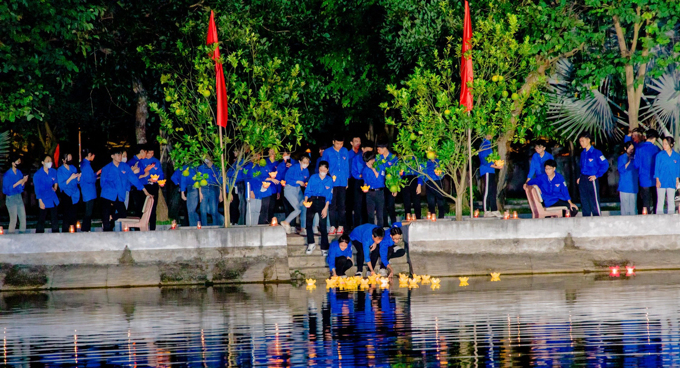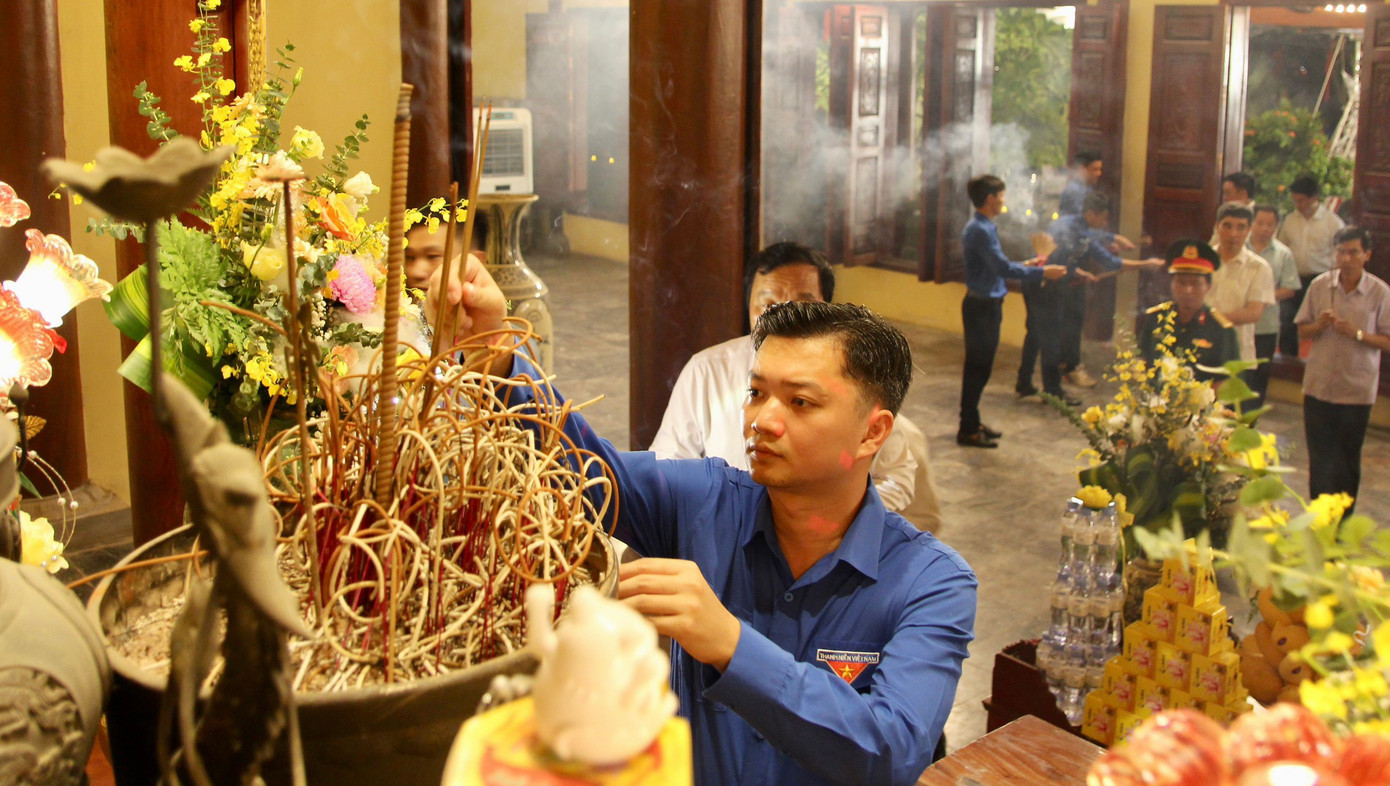 Sau khi thực hiện nghi thức dâng hương, các đồng chí lãnh đạo trung ương, tỉnh, các đại biểu và nhân dân; đoàn viên thanh niên đã đặt hoa, dâng hương, thả hoa đăng để tỏ lòng thành kính, tri ân, tưởng nhớ đến các Anh hùng liệt sĩ.