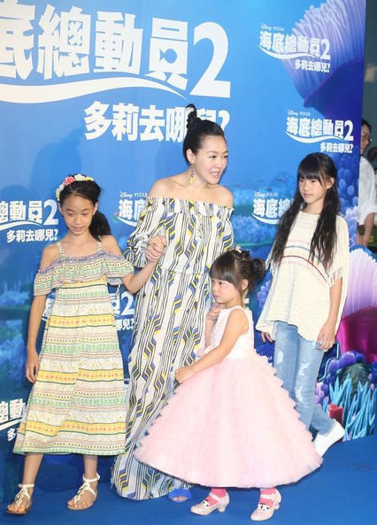 Hôm qua 29/6, Từ Hy Đệ lần đầu đưa cả ba cô con gái xinh xắn 10 tuổi, 8 tuổi và 4 tuổi tới buổi công chiếu một bộ phim hoạt hình.