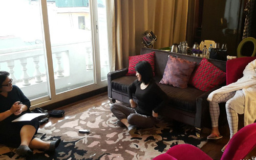 Hy Đệ khoe trên trang cá nhân Weibo ảnh cô trả lời phỏng vấn trong khách sạn.
