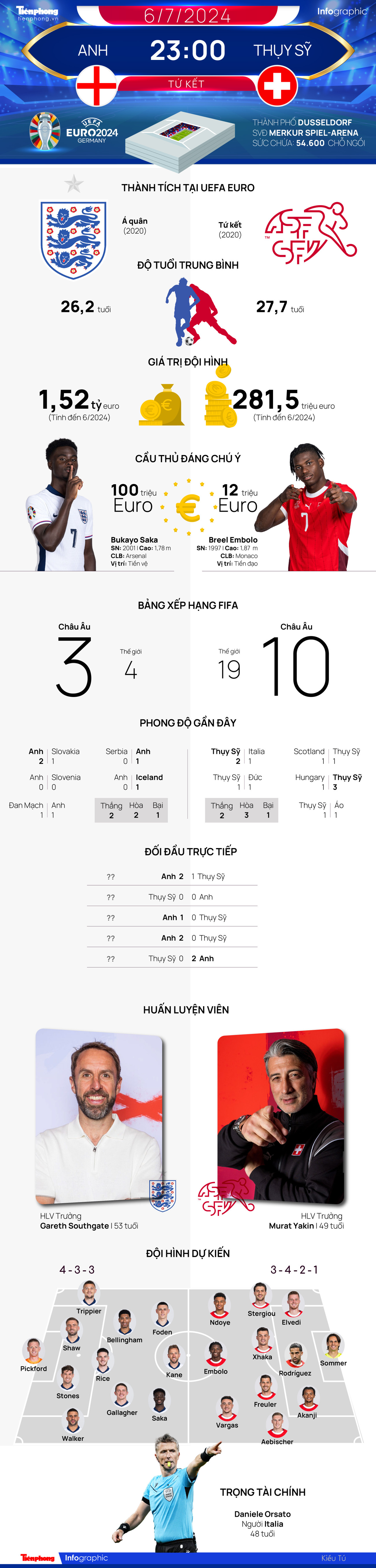 Google News Tứ kết EURO 2024: Tương quan đội hình trước trận Anh vs Thụy Sỹ, 23 giờ 6/7