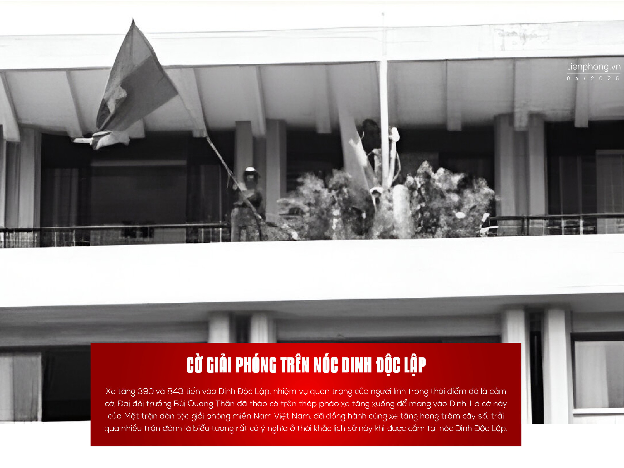 Trong chiến dịch Hồ Chí Minh, các cánh quân của ta từ nhiều hướng tiến về Sài Gòn, mà ở đó điểm đến quan trọng nhất là chiếm lĩnh Dinh Độc Lập, cơ quan đầu não của chính quyền Việt Nam Cộng hòa. Đúng 11 giờ 30 phút ngày 30/4/1975, hai chiếc xe tăng đầu tiên mang số hiệu 390 và 843 của Đại đội 4 (Tiểu đoàn 1, Lữ đoàn xe tăng 203, Quân đoàn 2) tiến vào Dinh Độc Lập, kết thúc thắng lợi chiến dịch Hồ Chí Minh lịch sử.