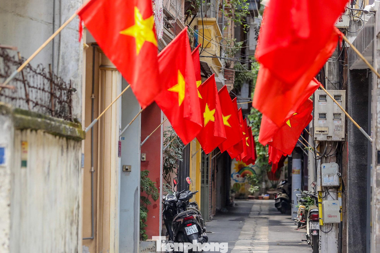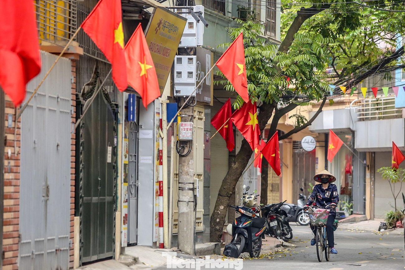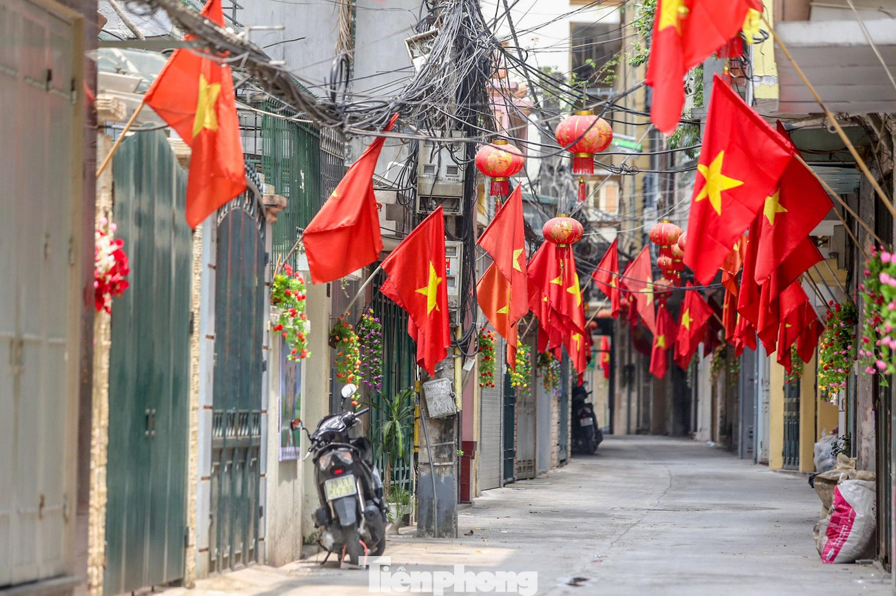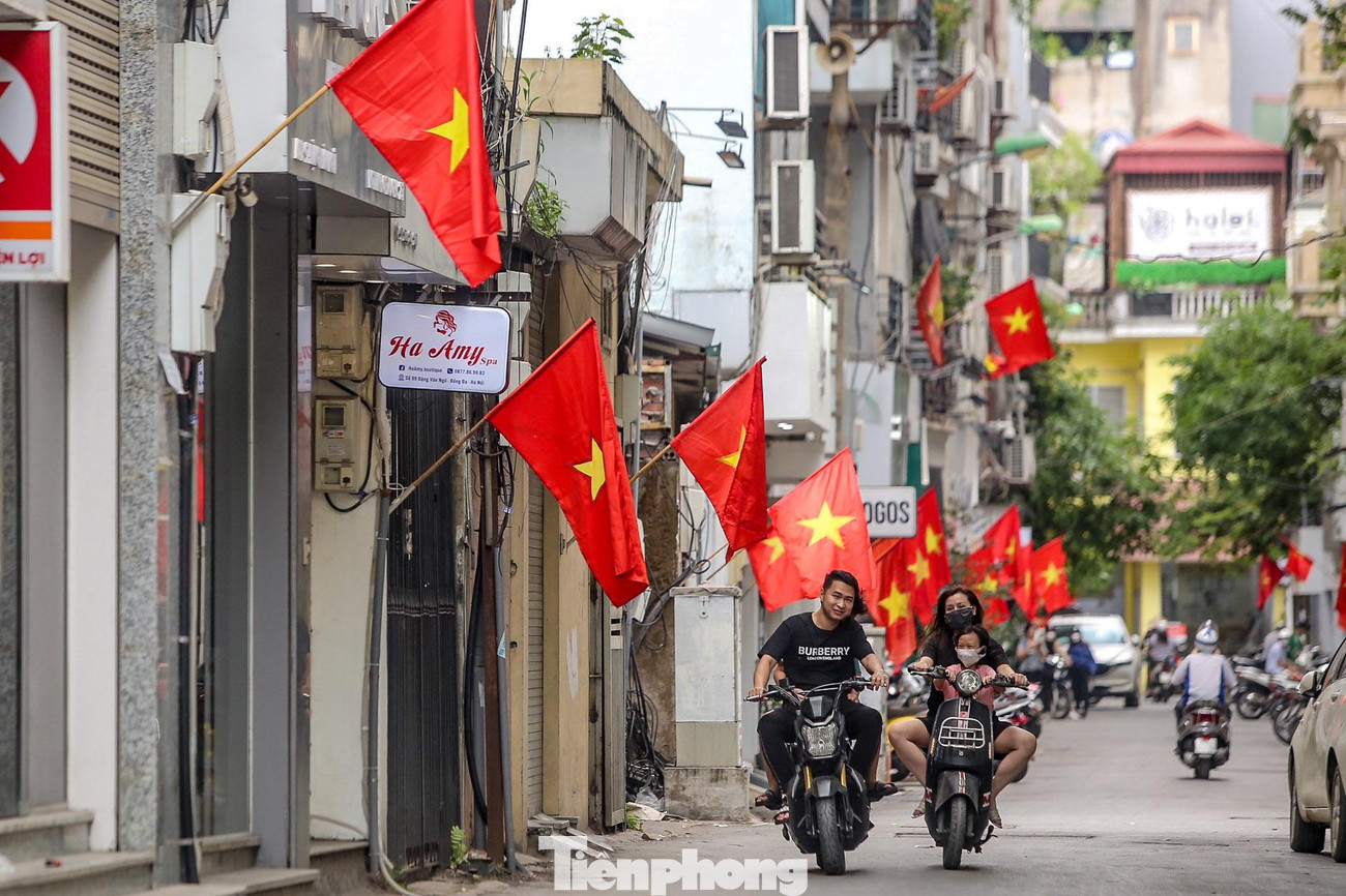 | Cờ đỏ xuất hiện trong từng ngóc ngách của phố phường Thủ đô. |