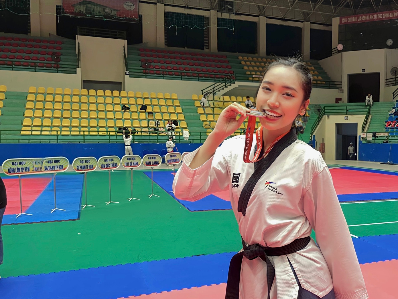 | Song song với công việc học, Kim Loan còn là vận động viên của Đội tuyển Quyền Taekwondo Việt Nam, mang về nhiều thành tích. |