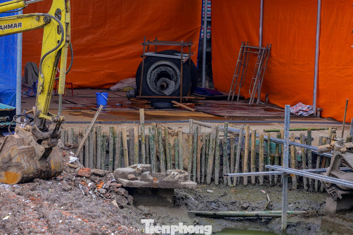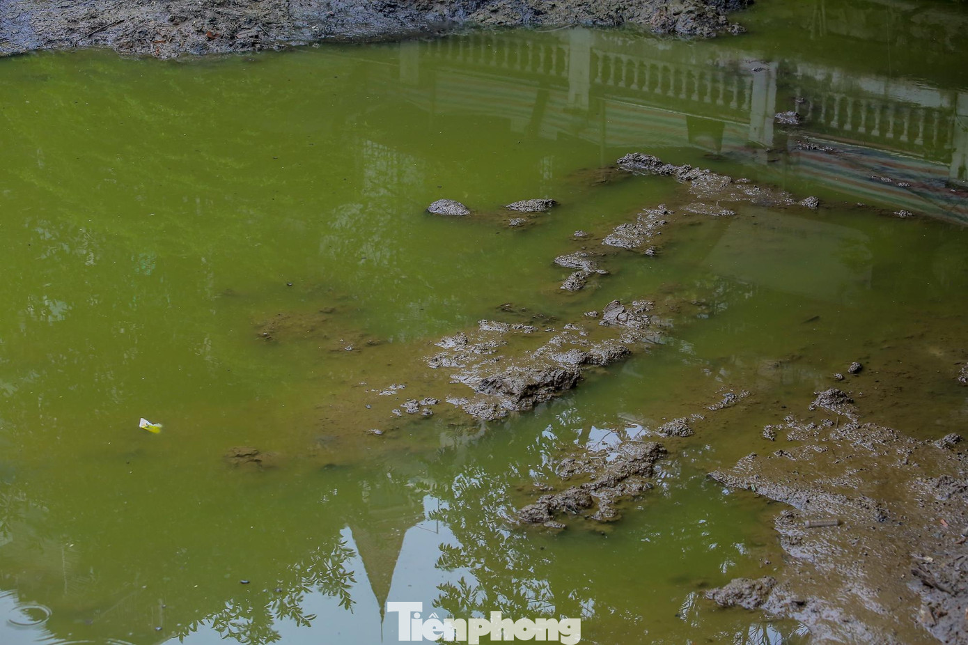 Công nhân thi công dự án cho biết, việc tu bổ, tôn tạo di tích được thực hiện từ 3 tuần trước. Trong những ngày gần đây do ảnh hưởng của mưa nên tiến độ đang chững lại. Ban ngày, lực lượng thi công hút hết nước trong hồ, ban đêm sẽ tiến hành nạo vét bùn.