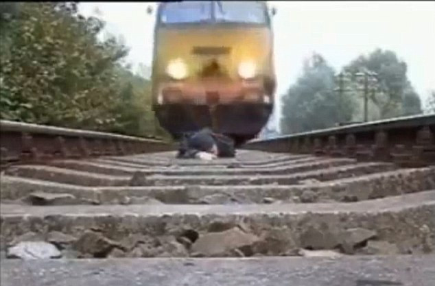 TPO - Một người đàn ông tỏ ra khá điên rồ khi tự nằm trên đường ray xe lửa, quay camera cảnh đoàn tàu hỏa chạy trên thân mình.