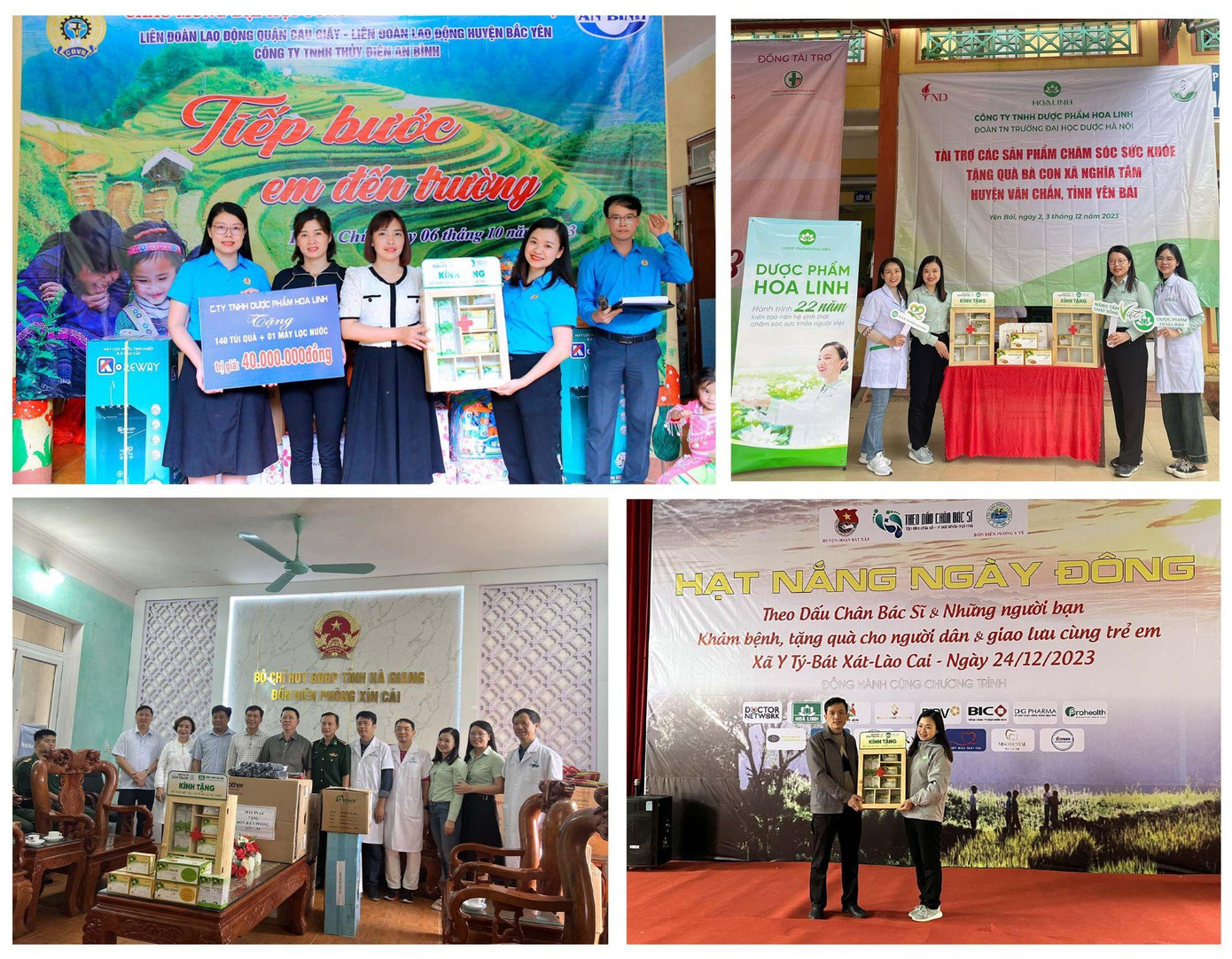 Tiếp theo đó, tháng 9/2023, vào dịp Tết Trung thu đoàn viên, trong chương trình khám sức khoẻ, phát thuốc và tặng quà với chủ đề “Mùa thu biên giới” do Ban Dân vận tỉnh ủy Hà Giang, UBND huyện Mèo Vạc phối hợp với đoàn “Theo dấu chân bác sỹ”, Dược phẩm Hoa Linh đã cấp phát cho gần 1200 lượt người dân các sản phẩm siro và viên ngậm ho bổ phế Bảo Thanh.