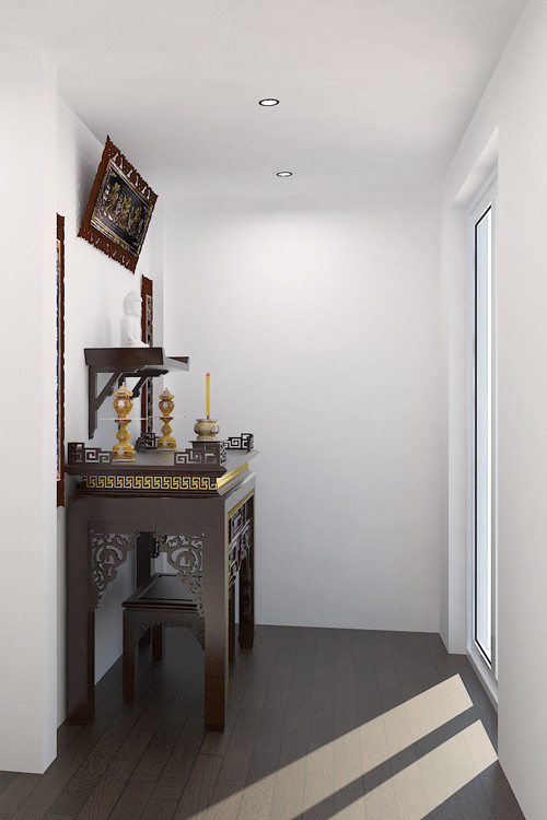 Phòng thờ thiết kế đơn giản nhưng trang nghiêm nhìn ra sân thượng.