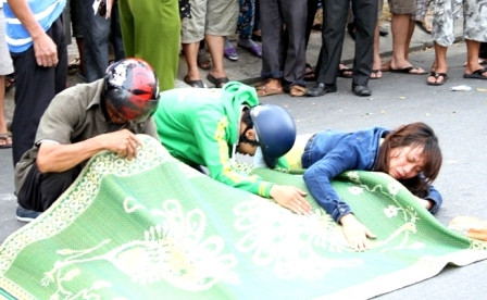 Người vợ của nạn nhân nhận được tin chồng tử nạn đã đến hiện trường ôm thi thể chồng gào khóc thảm thiết. Rất đông người dân đứng hai bên đường chứng kiện vụ tai nạn ai cũng xót xa, thương cảm cho người vợ.