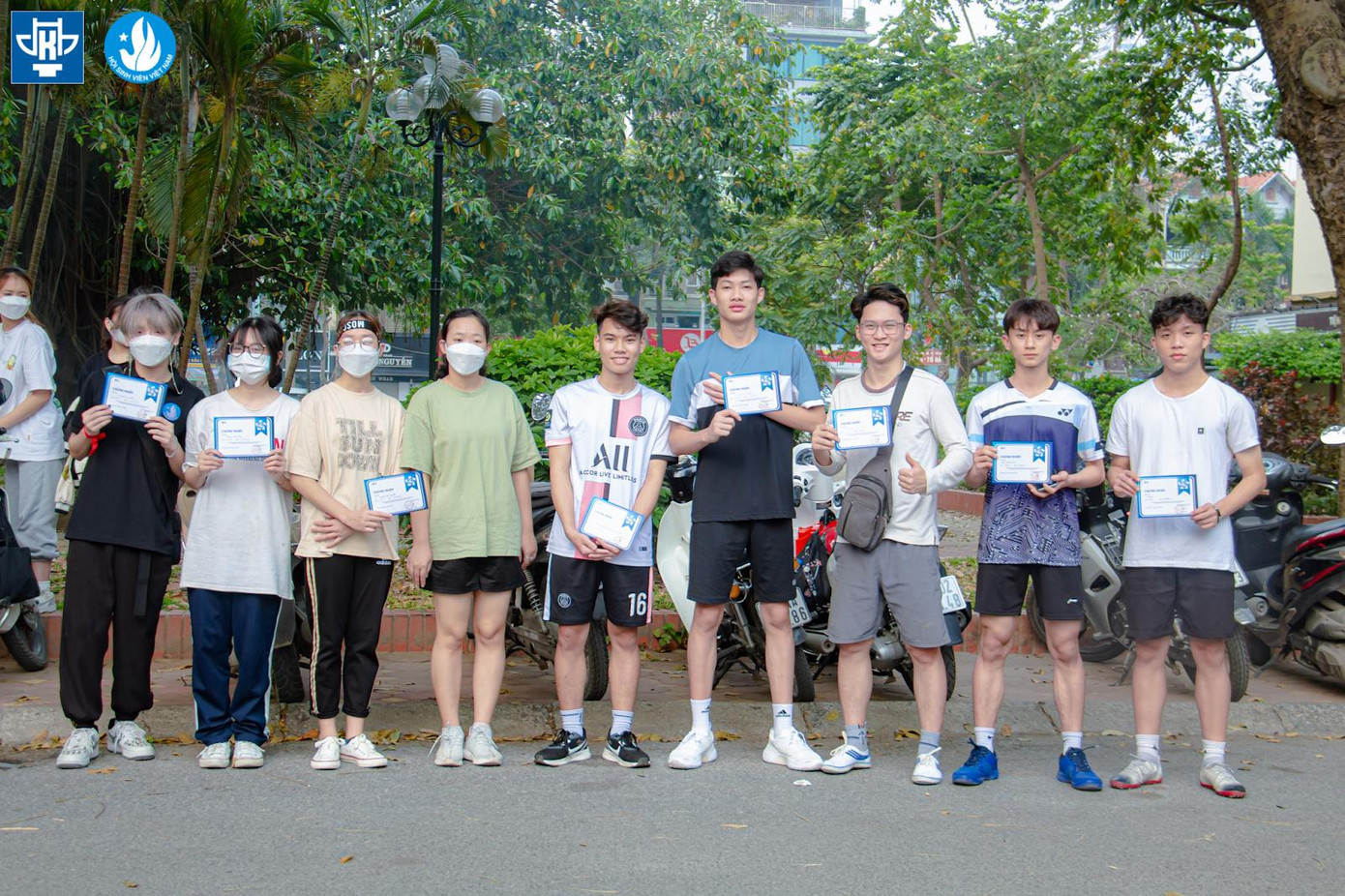 Hình ảnh các bạn nhận giấy chứng nhận tiêu chí “Thể lực tốt” sau cuộc thi.