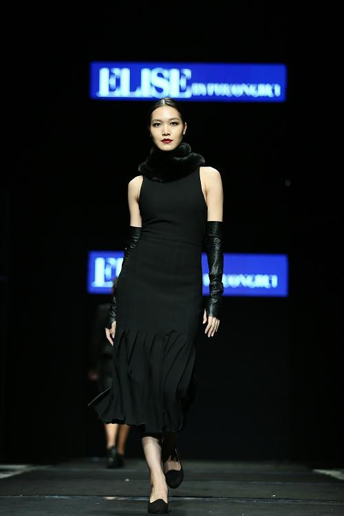 Khuynh hướng tối giản được nhà thiết kế Phương Bùi cho thương hiệu Elise thể hiện bằng sự đối lập cực điểm của hai màu đen trắng. Bộ sưu tập đẩy mạnh những kiểu dáng gọn gàng và đơn giản, gợi ý cho những ngày đông nhẹ sắp đến.