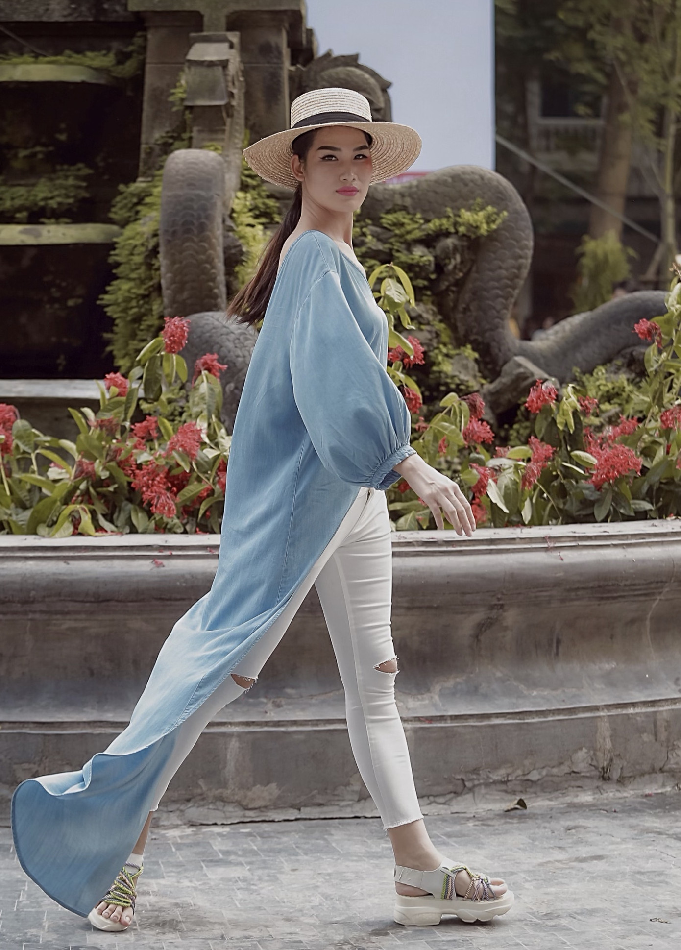 Mở màn là khúc biến tấu của GenViet Jeans mang ý tưởng “Nơi tôi đang sống”. Jeans kết hợp mạnh mẽ nhưng nhẹ nhàng với những hoa văn lấy từ cuộc sống như quang gánh, kiến trúc cổ, nón lá ... Những vật dụng tưởng rất bình thường, thân quen đã làm nên những hoạ tiết độc đáo.