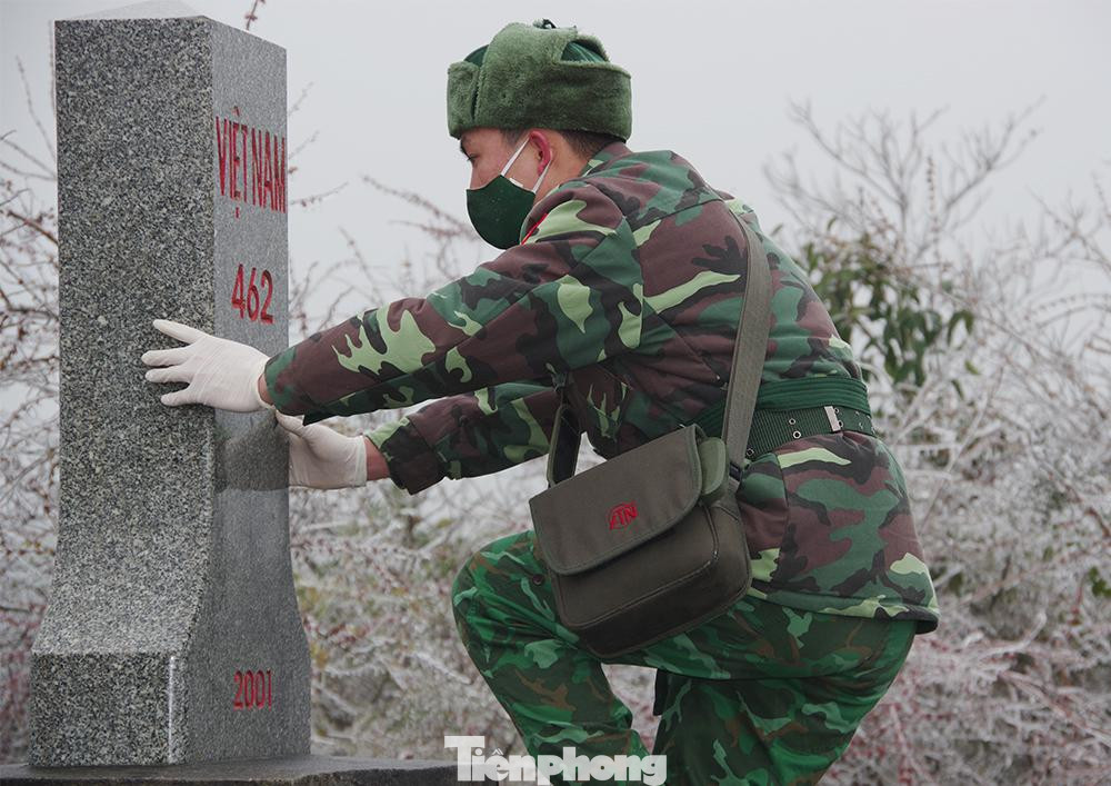 | Những ngày này, nhiệt độ xuống âm 2 - 3 độ C vào ban đêm, nhưng cán bộ, chiến sĩ Bộ đội Biên phòng vẫn thực hiện nghiêm nhiệm vụ chống xuất - nhập cảnh trái phép cũng như phòng chống dịch COVID-19. |