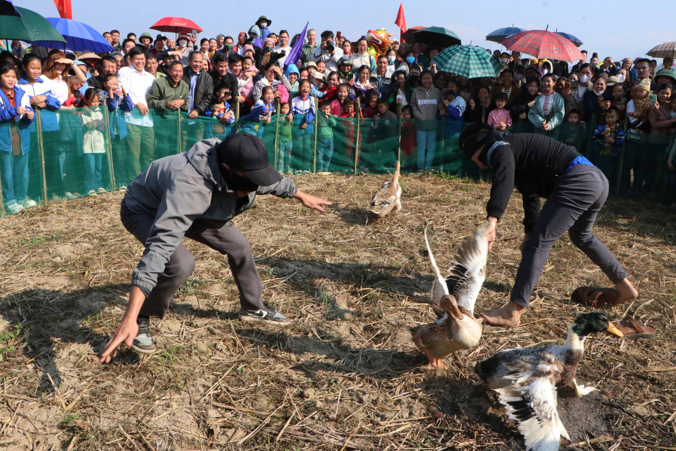 | Trò chơi bịt mắt bắt vịt thu hút đông đảo người dân địa phương và du khách tham gia. |