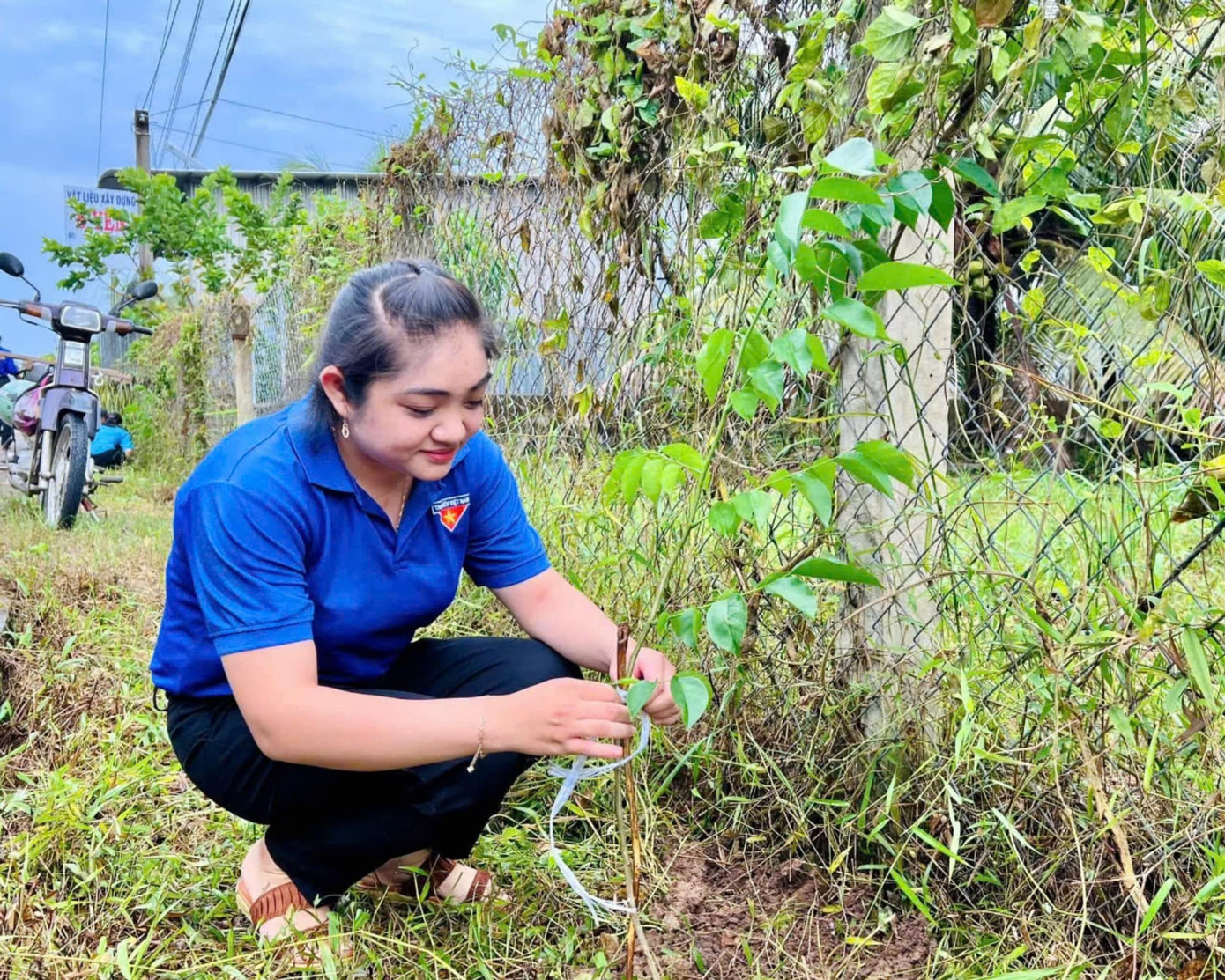 | Đoàn viên thanh niên Bến Tre tham gia trồng và chăm sóc cây xanh. |
